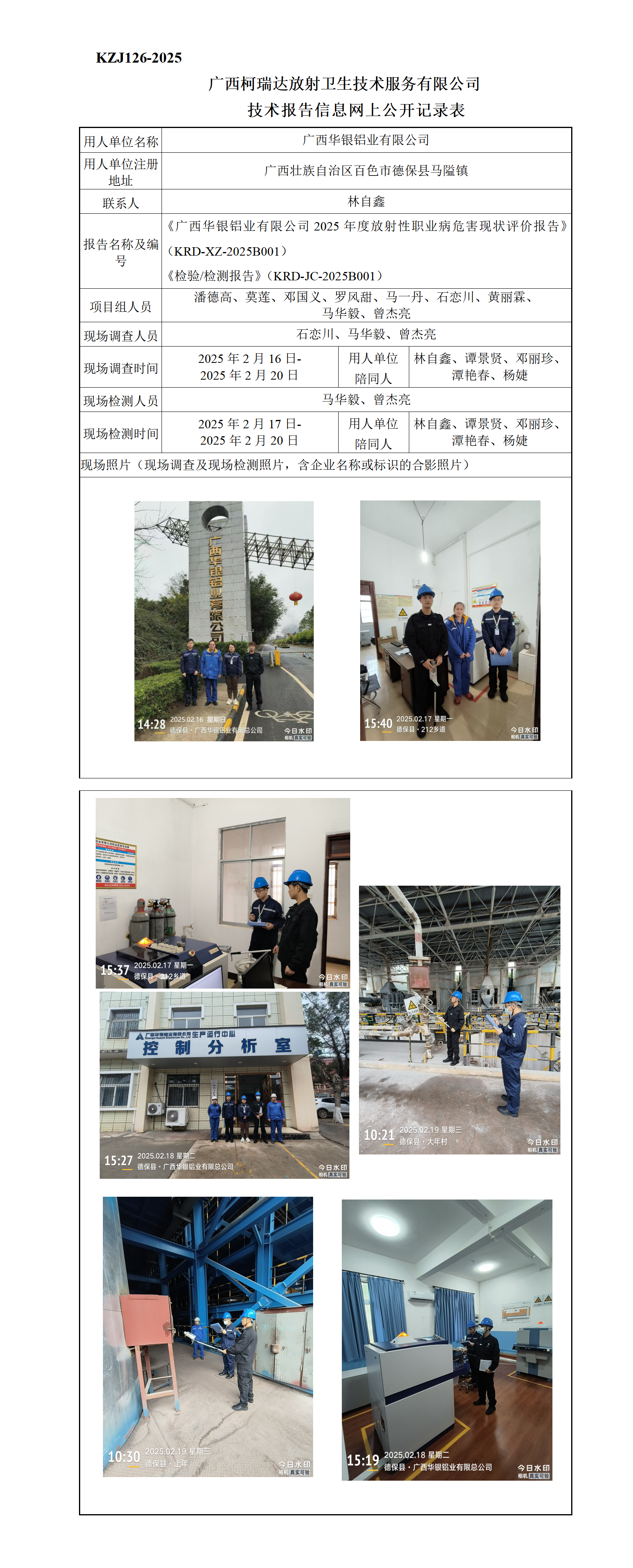 广西华银铝业有限公司放射性职业病危害现状评价报告(2025年)