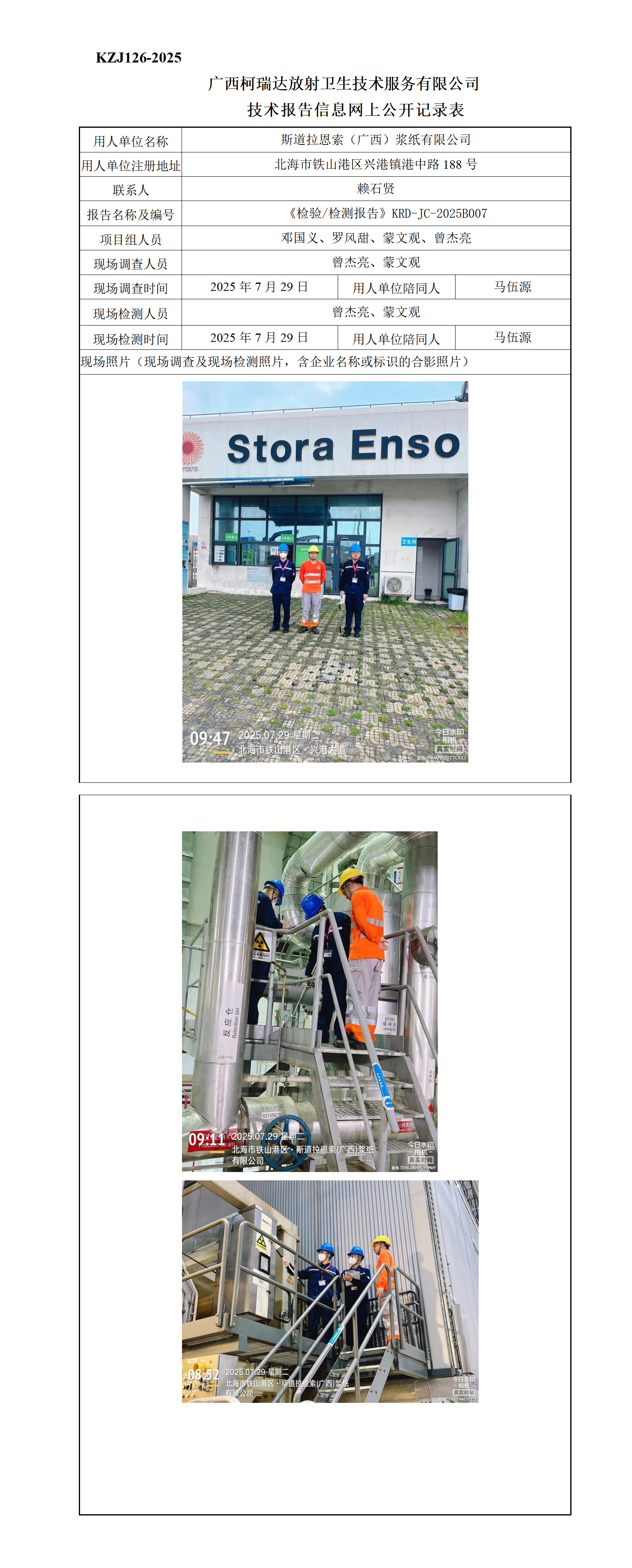 斯道拉恩索(广西)浆纸有限公司职业病危害因素定期检测(2025年)