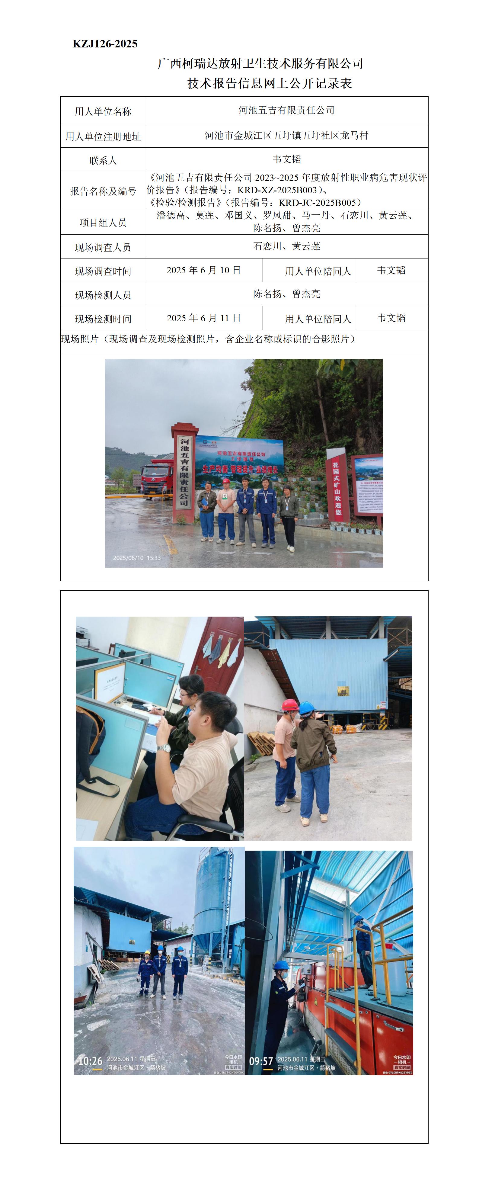 河池五吉有限责任公司2023~2025年度放射性职业病危害现状评价报告